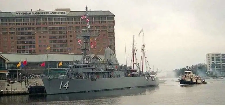 „Első a szabadságban” – ez az USS Harpers Ferry mottója, a Harpers Ferry osztályú hajók dokkjainak zászlóshajója. Ez a cirkáló a nyugat-virginiai Harpers Ferryről kapta a nevét, a polgárháború alatti kulcsfontosságú elhelyezkedése miatt. 5 hüvelykes (12,7 milliméteres) M2HB géppuskák.