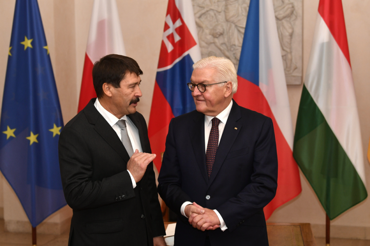 A lengyelek, a magyarok, a csehek és a szlovákok bátorsága és szabadságszeretete nélkül nem valósulhatott volna meg a német egység és nem történhettek volna meg a térségbeli békés forradalmak - hangsúlyozta a szövetségi elnök a visegrádi négyek országcsoport tiszteletére emelt szobornál, amelynél Milos Zeman cseh, Andrzej Duda lengyel, Áder János magyar és Zuzana Caputová szlovák államfővel együtt virágokat helyezett el.