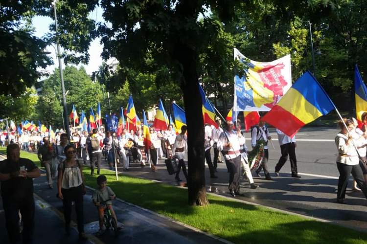 Az Agerpres hírügynökség szerint a megmozdulásra több száz népviseletbe öltözött, nemzeti lobogót lengető résztvevő érkezett, az általuk magasba emelt táblák egyikén pedig "A Trianon felé vezető út Budapesten át vezet" felirat volt olvasható. A résztvevők megkoszorúzták az első világháborús diadalívet, majd a kormány székháza elé vonultak.