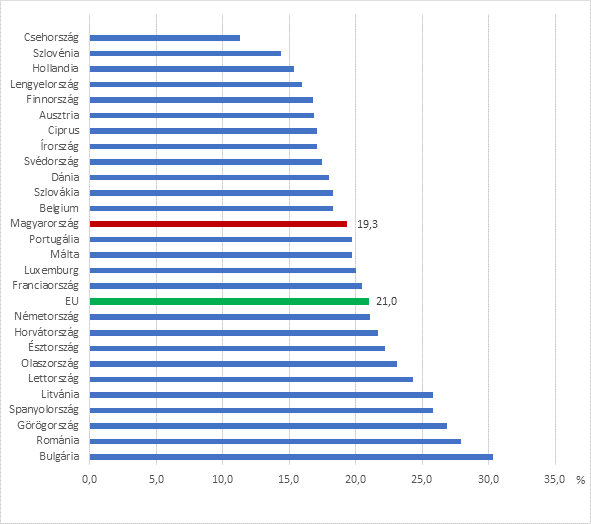 A szegénység vagy társadalmi kirekesztődés kockázatának kitettek aránya az Európai Unió országaiban, 2023