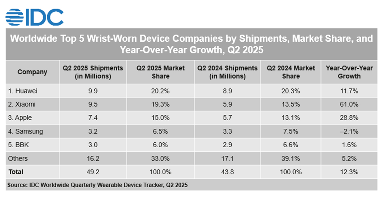 A Huawei 2025 második negyedévében 20,2 százalékos részesedéssel az első helyen állt a globális viselhető okoseszközök piacán – derül ki az IDC piackutató cég legfrissebb adataiból. Ez már a második egymást követő negyedév, amikor a vállalat vezető pozíciót ért el.