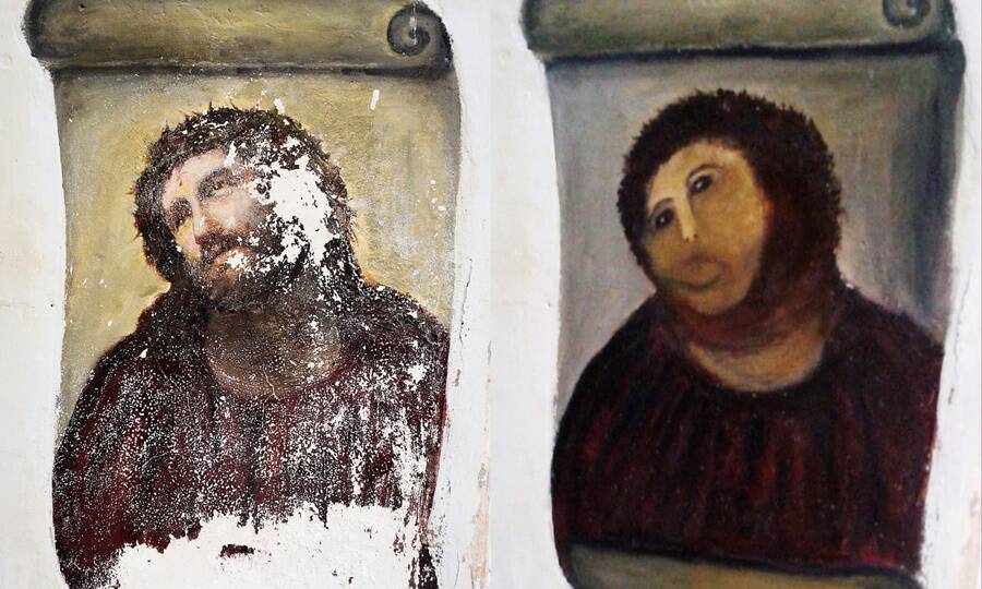 A leghíresebb példa a Jézus Krisztust ábrázoló évszázados festmény sajnálatos megrongálása a Sierra de Moncayo egy apró kápolnájában, Spanyolország északkeleti részén, 2012-ben.