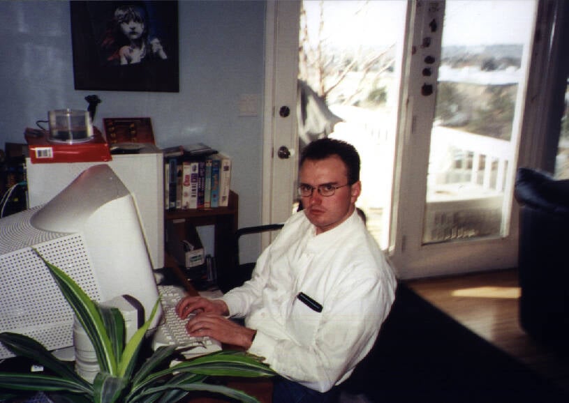 Egy férfi az otthoni asztali számítógépénél. Körülbelül 2001. - Forrás: Wikimedia Commons