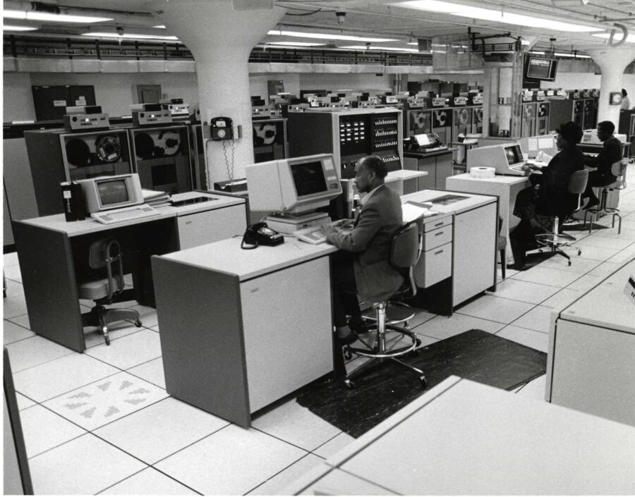Az Egyesült Államok Népszámlálási Hivatalának számítógépes terme az 1980-as években.