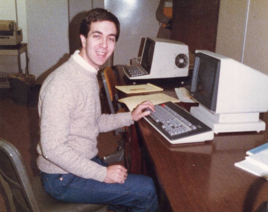 Egy férfi ül a terminál számítógépénél, 1984 körül. - Forrás: Reddit
