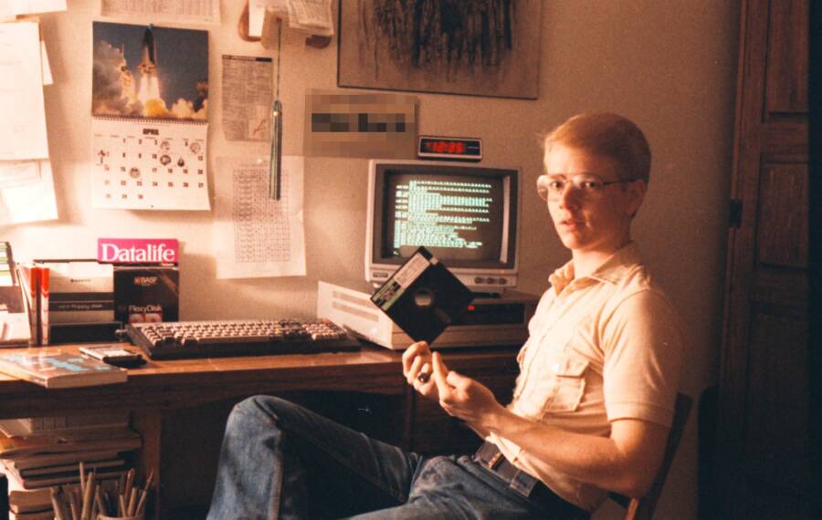 Bill Gates, a Microsoft alapítója pózol PC-gyűjteményével az 1980-as években. - Forrás: Reddit