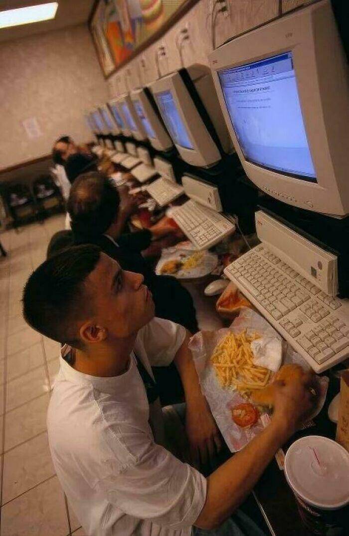 Egy vendég a Burger Kingben használja az egyik nyilvános számítógépet. 1998. - Forrás: Reddit