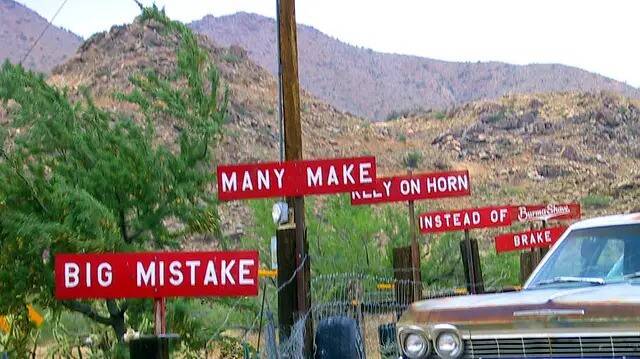 A Burma-Shave-et népszerűsítő táblák az illinoisi 66-os út mentén. 1961.