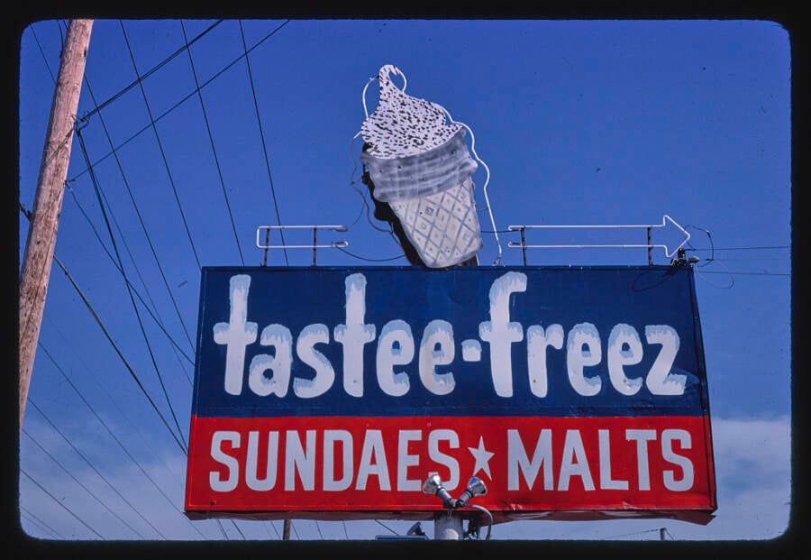 Egy Tastee-Freez tábla a 66-os út mentén, Tulsában, Oklahomában. 1979.