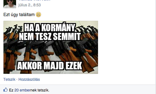 A Jobbik afféle cselekvő pártként tüntetéseket szervez és bármikor rálicitál a Fideszre, és a jelek szerint állampolgárok ezrei érzik jó ötletnek a legalattomosabb módon kárt okozni a legnyomorultabbaknak: ételosztást imitálva mérgezik őket, most még csak hashajtókkal, vagy fejezik ki támogatásukat az ezt cselekvők irányában. A szélsőjobboldali fórumokon egyre gyakoribb a gépfegyverek posztolása a témában, a tömegközlekedési eszközökön, boltokban egyre több konfliktusról hallunk, amit a nem európainak tűnő emberekkel szemben provokálnak az utasok.