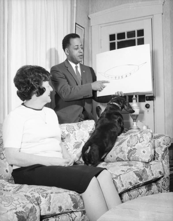 Barney és Betty Hill UFO-elrablásuk történetét egy Barney által rajzolt diagram segítségével írják le. - Forrás: Bettmann/Getty Images
