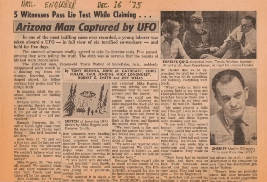 1971-ben történt a Pascagoula-incidens, amelynek során állítólag két halászt raboltak el egy Mississippi-folyópartról, és egy idegen hajón tartottak fogva. Aztán 1978-ban történt Travis Walton elrablása, amelynek során egy texasi férfi öt teljes napra eltűnt.