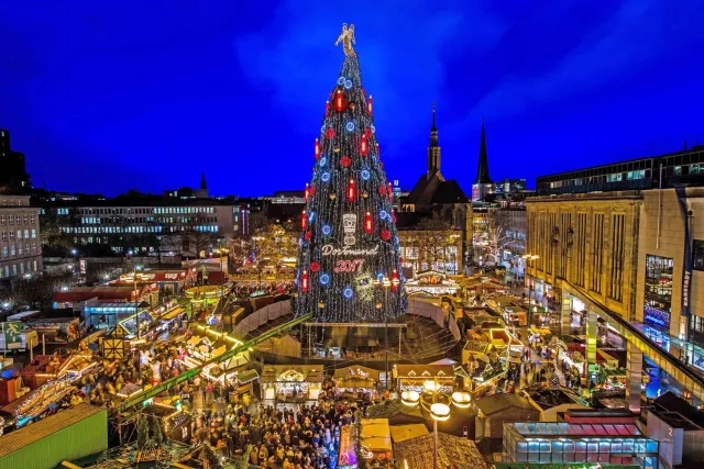 Dortmund karácsonyi vásárának középpontjában egy körülbelül 45 méter magas karácsonyfa áll, amelyet nem egyetlen növényből, hanem mintegy 1200 lucfenyőből építenek össze. A tetején egy hatalmas angyal trónol, a fa pedig több tízezer fényforrással világít. Ez a világ egyik legnagyobb „klasszikus” értelemben vett karácsonyfája.