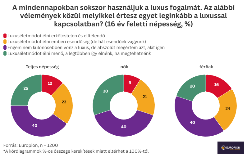 A társadalom több mint egyharmada ugyanakkor inkább elítéli a „luxizást”. 12% szerint egyenesen erkölcstelen és elítélendő, további 23% pedig gyarló emberi esendőségnek tartja. Meglepő módon a leginkább elutasító vélemények sokszor éppen a magas jövedelműek (17%), és a diplomások (19%) körében fogalmazódtak meg, tehát olyan társadalmi csoportok részéről, akik nagyobb arányban engedhetik meg magukat a fényűzést.