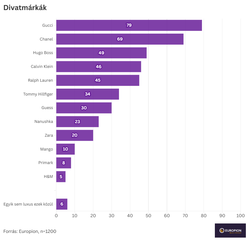 A „fast fashion” világban viszont ritka, hogy valamit luxusnak lássanak: H&M (5%), Primark (8%), Mango (10%). A Zara azonban valamelyest kilóg a sorból e tekintetben: a spanyol sikermárka önpozicionálási stratégiájának sikereként is betudható, hogy minden ötödik magyar (20%) luxusmárkaként tekint rá, különösen a 30–39 évesek (26%).
