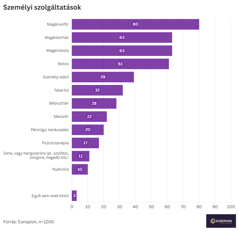 Személyi szolgáltatások: sofőr, magániskola, magánkórház, botox