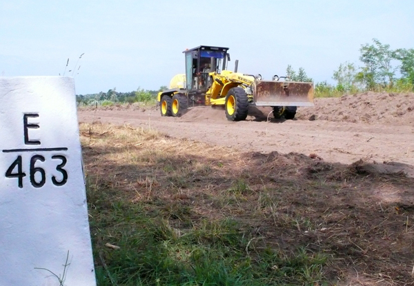 Jó sok kilométert kell gyalogolnunk a naptól forró homokban, mire - rendőri kísérettel - eljutunk a munkagépekig. Földgyalu, tolólapos lánctalpas is egyengeti itt a talajt, rettenetes "homokviharokat" kavarva a tikkasztó napsütésben. Kezelőik nem túl bőbeszédűek, ráadásul a "sajtó" pont rosszkor zavarta meg őket, épp sziesztáztak. De a propaganda fontos, zokszó nélkül másznak vissza a vezetőfülkékbe, hadd készüljenek a jó kis felvételek.