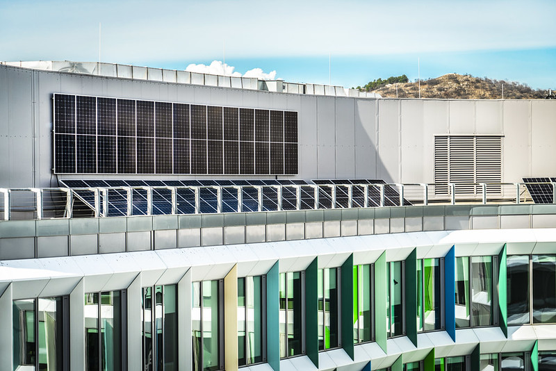Közel 150 darab, összesen 81,76 kWp teljesítményű napelem került fel a Budapest ONE első ütemének tetejére. A két röplabdapálya méretű rendszerrel megtermelt zöldenergia tovább csökkenti az irodaház károsanyag-kibocsátását és egyúttal a bérlőik energiaköltségeit is.