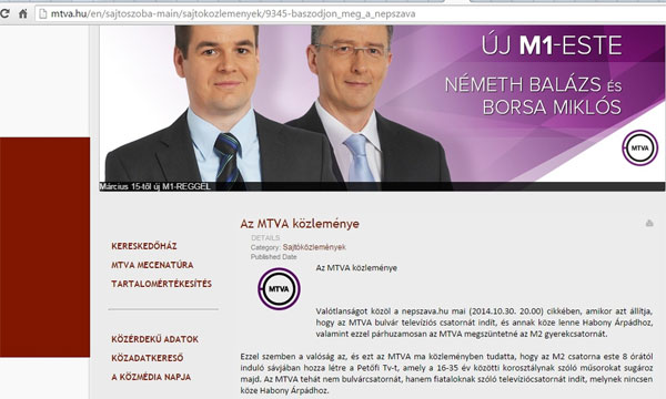 "Baszódjon meg a Népszava" - ezt üzente lapunknak igen kedvesen még tavaly októberben egy cikkünkre reagálva az MTVA, mint az a fenti URL-en látható.