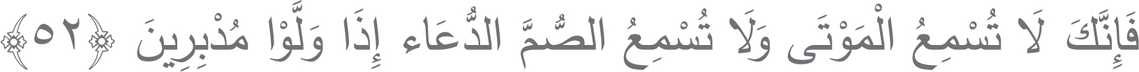 So verily thou canst not make the dead to hear, nor canst thou make the deaf to hear the call, when they show their backs and turn away. (Quran 30:52)