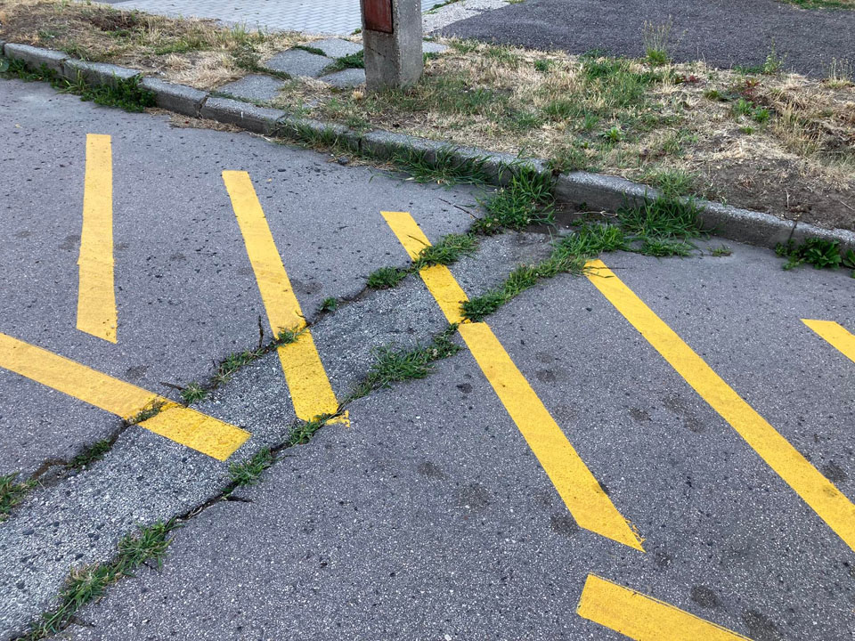 Ahogy a korábbi kerékpárutas "fejlesztésnél", most sem számított sem a kátyú, sem a gaz, csak kerüljön fel a festék, ha már egyszer ki van adva a feladat.